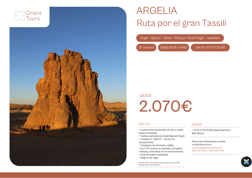 ARGELIA - Ruta gran Tassili 07 noches del 10 al 17/10/2026 vuelos bcn y mad desde 2.070€